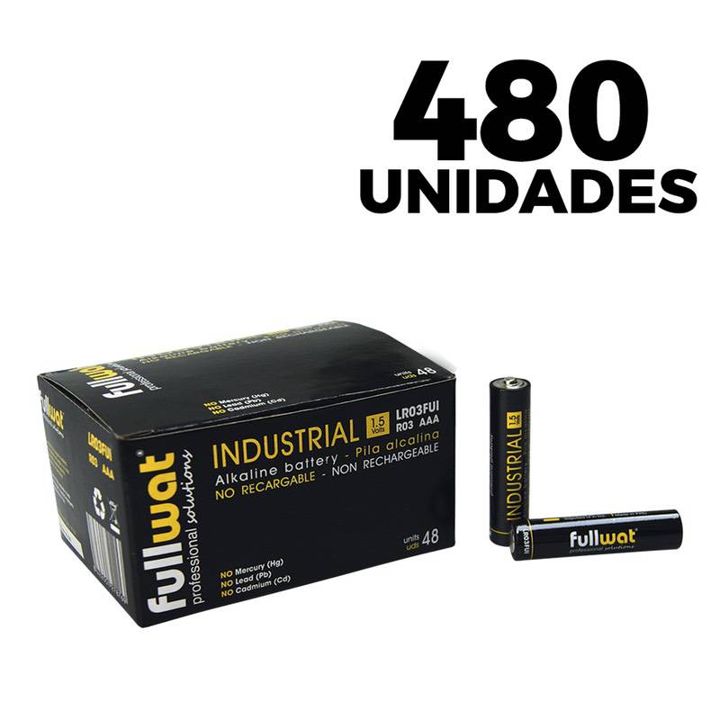 Pilas alcalinas FullWat Industrial LR03 (AAA) [Lote de 480 unidades]
